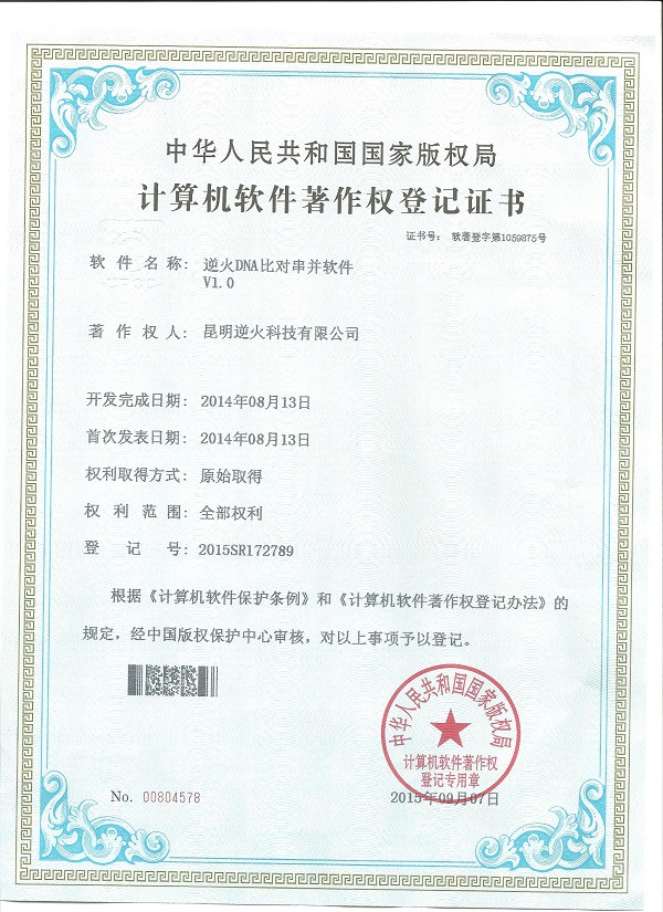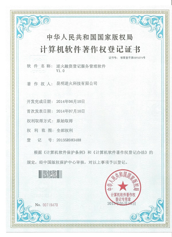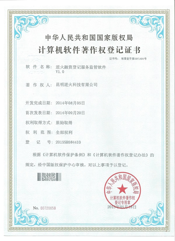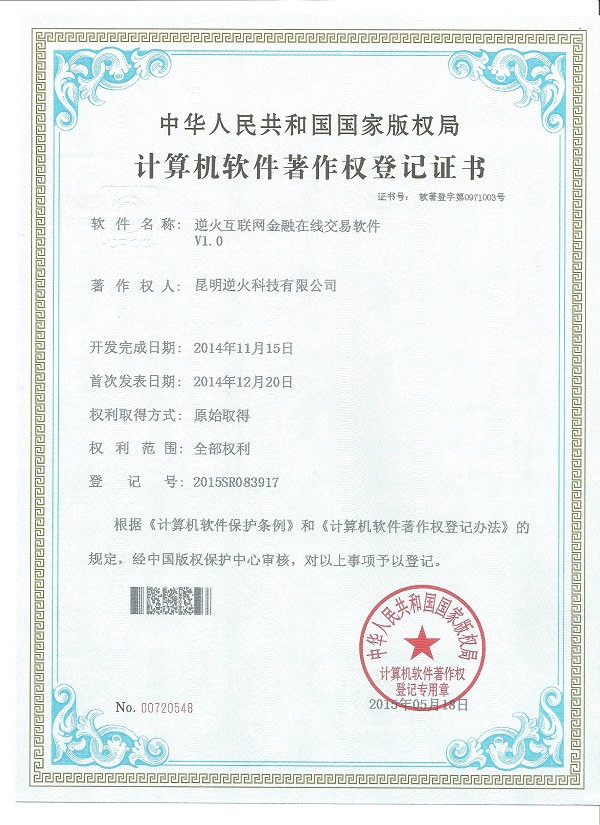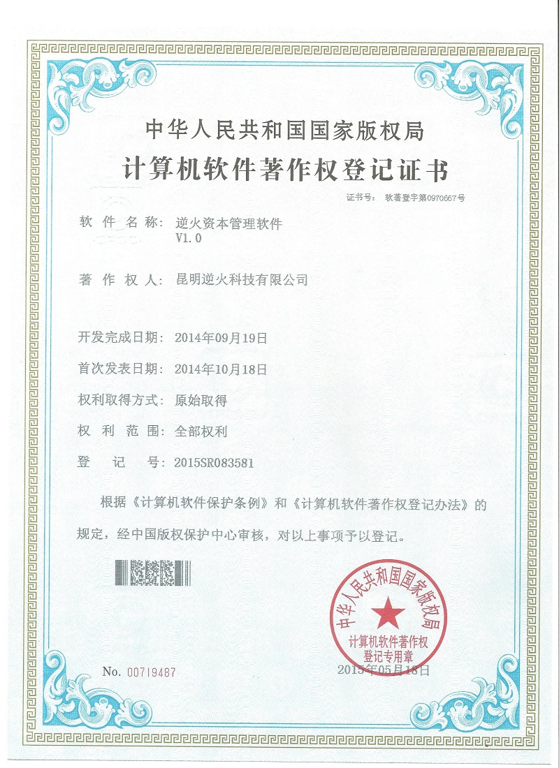 逆火科技六大計(jì)算機(jī)軟件著作權(quán)登記證書